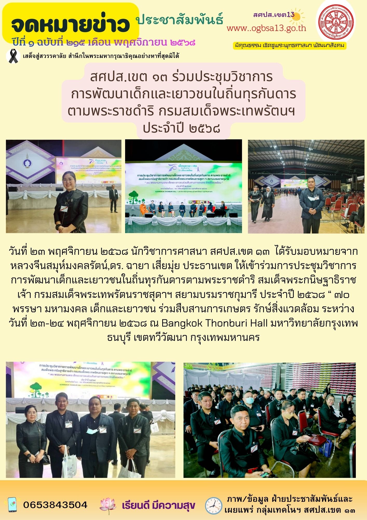 สศปส.เขต ๑๓ ร่วมประชุมวิชาการ การพัฒนาเด็กและเยาวชนในถิ่นทุรกันดารตามพระราชดำริ กรมสมเด็จพระเทพรัตน