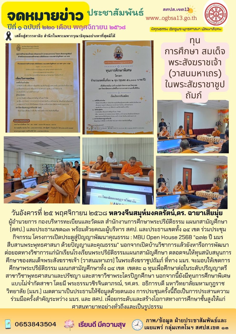 สศปส.เขต ๑๓ ร่วมงานสอบธรรมสนามหลวง ธรรมศึกษาระดับชั้นตรี-โท-เอก ประจำปี ๒๕๖๘