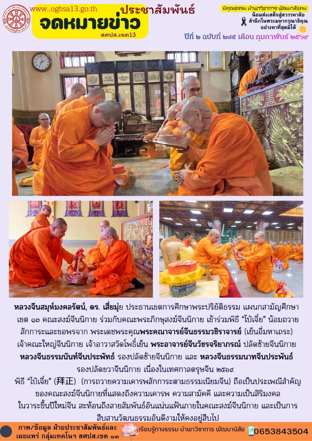 สศปส.เขต 13 มุทิตาสักการะพระผู้ใหญ่จีนนิกาย เนื่องในวันตรุษจีน