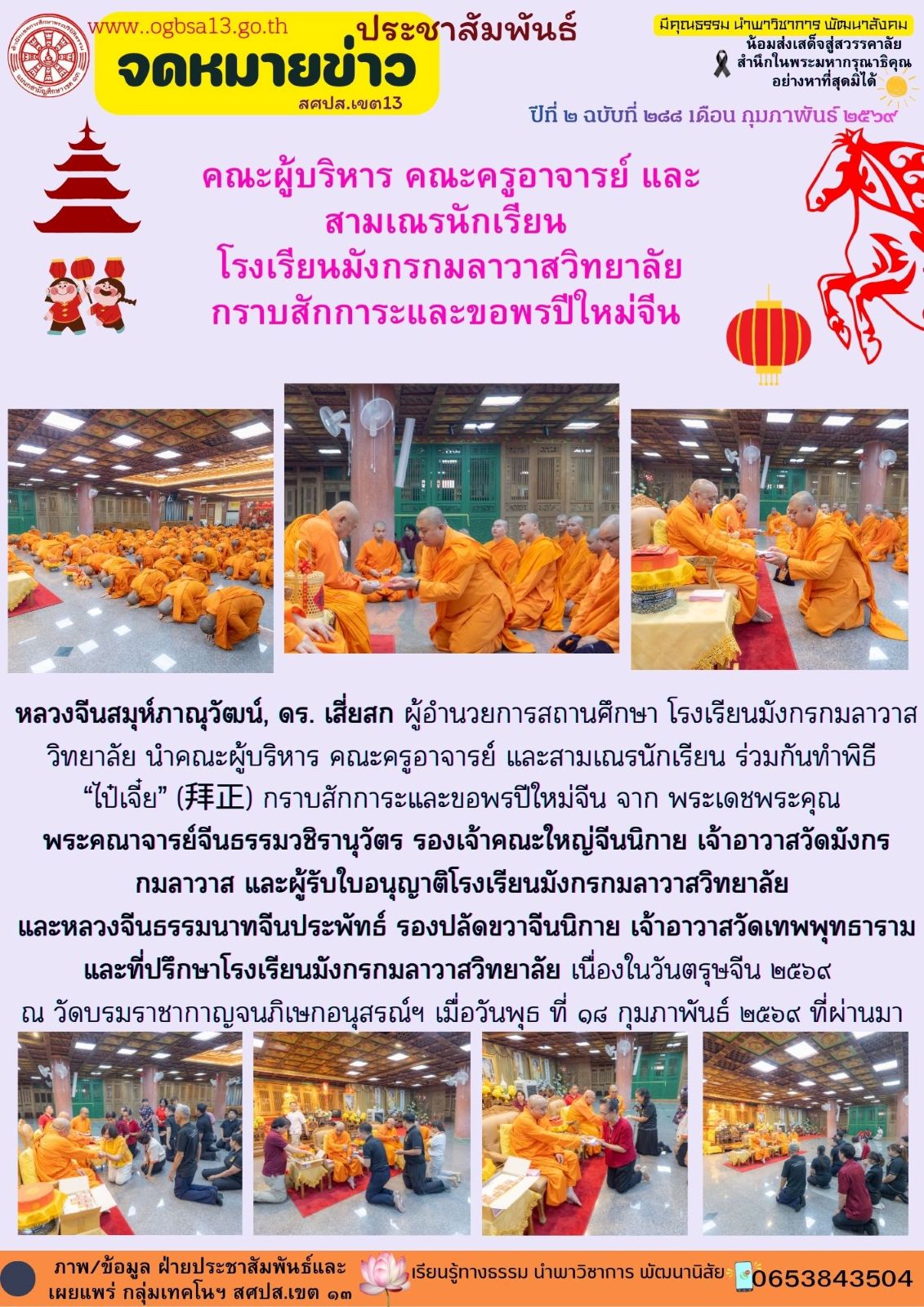 สศปส.เขต ๑๓ เข้ากราบสักการะเจ้าอาวาสวัดมังกร เนื่องในเทศกาลตรุษจีน ๒๕๖๙