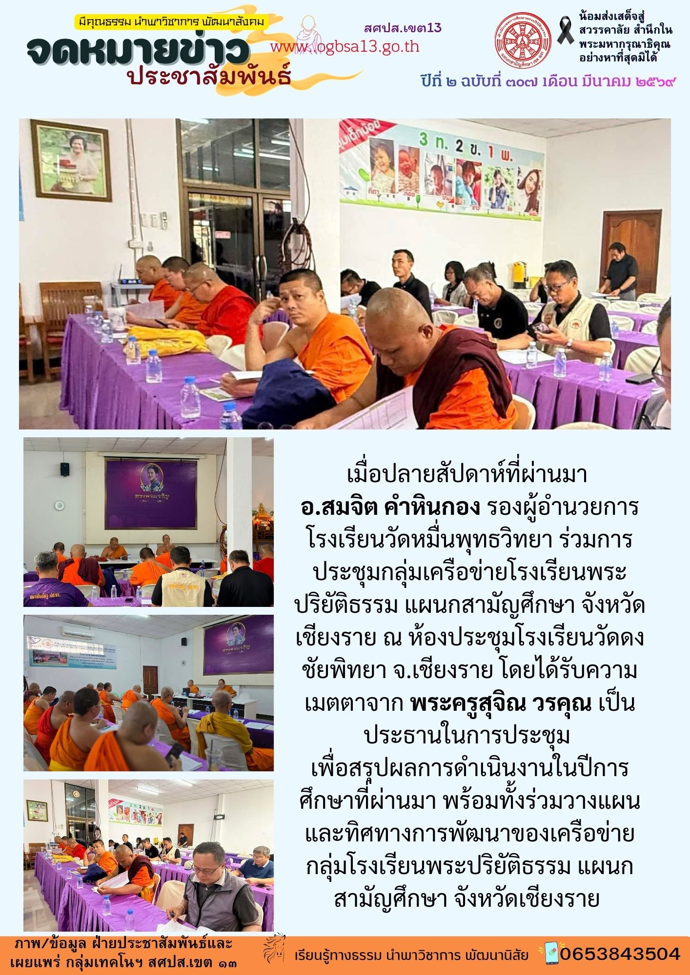 โรงเรียนวัดหมื่นพุทธวิทยา ร่วมประชุมเครือข่ายกลุ่มโรงเรียนพระปริยัติธรรม แผนกสามัญศึกษา จังหวัดเชียง