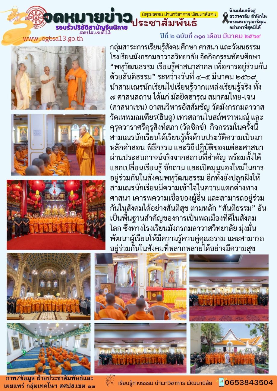โรงเรียนมังกรกมลาวาสวิทยาลัย จัดกิจกรรมทัศนศึกษา “พหุวัฒนธรรม เรียนรู้ศาสนาสากล เพื่อการอยู่ร่วมกันด