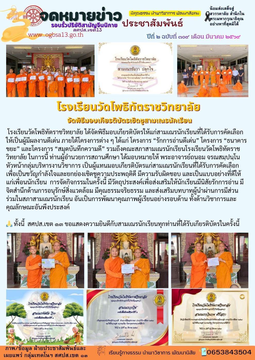 พิธีมอบเกียรติคุณในโครงการประจำปี 2568 โรงเรียนวัดโพธิทัตราชวิทยาลัย