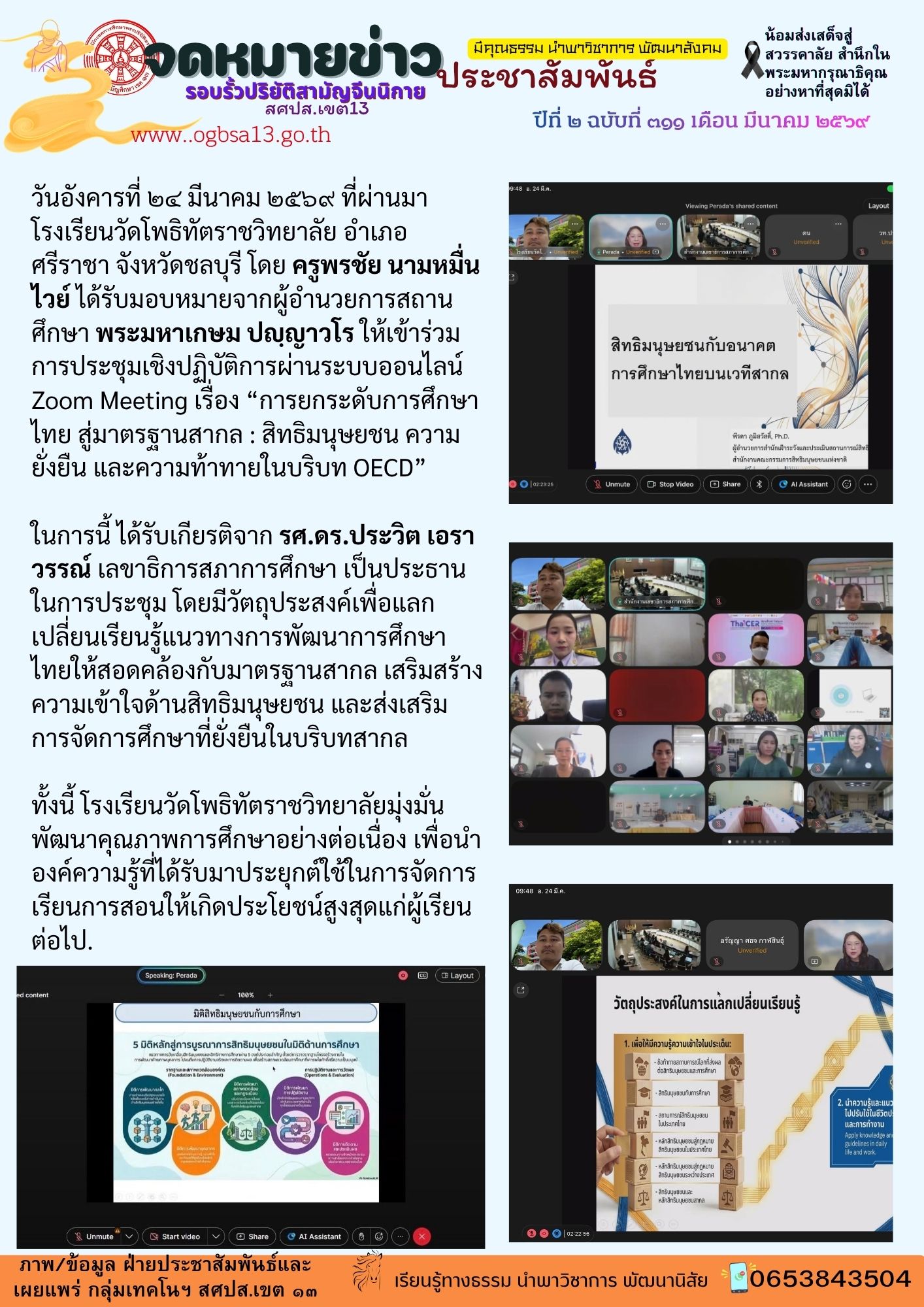โรงเรียนวัดโพธิทัตราชวิทยาลัย ร่วมประชุมออนไลน์