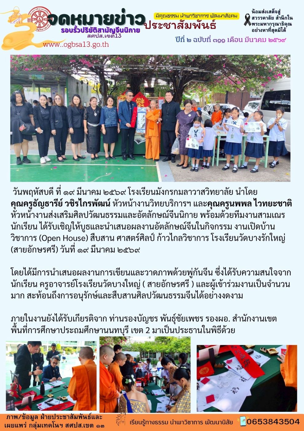 โรงเรียนมังกรกมลาวาสวิทยาลัยได้รับเชิญออกงาน เปิดบ้านวิชาการโรงเรียนวัดบางรักใหญ่