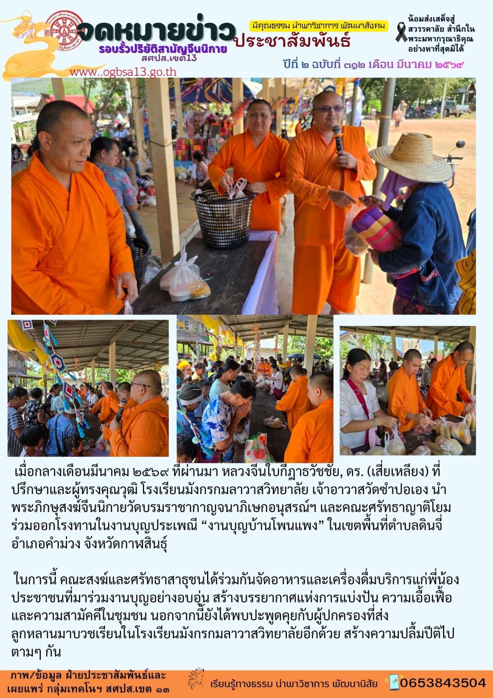 โรงเรียนมังกรกมลาวาสวิทยาลัยออกโรงทาน งานบุญบ้านโพนแพง
