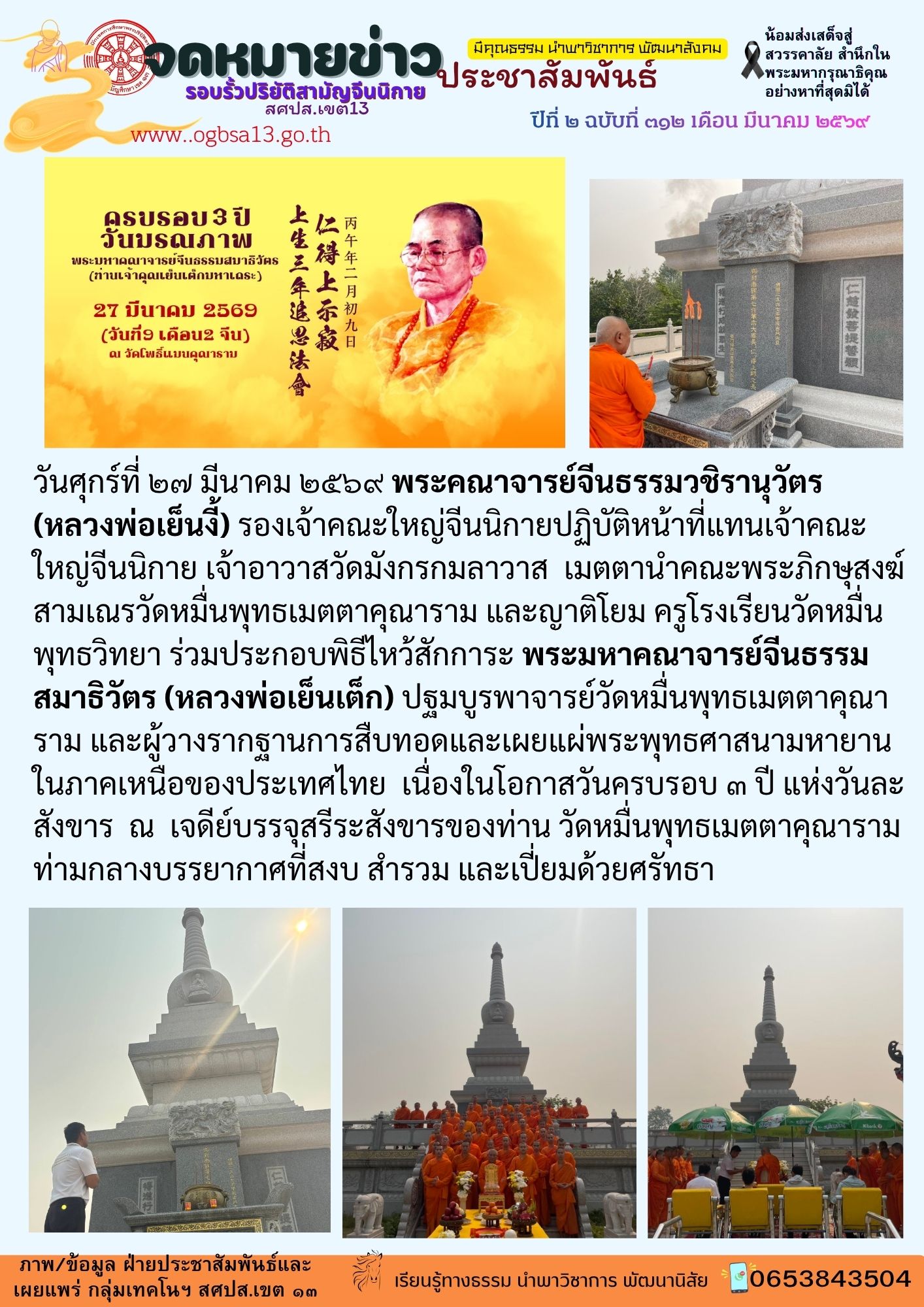 ทำบุญครบรอบ 3 ปี วันละสังขาร อดีตเจ้าคณะใหญ่จีนนิกาย