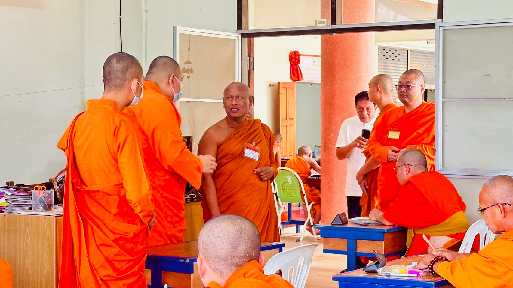 วันเสาร์ที่ ๘ พฤศจิกายน ๒๕๖๘ ที่ผ่านมา สำนักเรียนคณะสงฆ์จีนนิกาย สนามสอบโรงเรียนวัดหมื่นพุทธวิทยา จ.เชียงราย ได้จัดให้มีการสอบนักธรรมระดับชั้นโทและเอก ระหว่างวันที่ ๗-๑๐ พฤศจิกายน ๒๕๖๘ เป็นวันที่สองของการสอบ ได้มีโอกาสต้อนรับ พระกวีวรญาณ (ณรงค์ ญาณิสุสโร ปธ.๗) เลขานุการ รองแม่กองธรรมสนามหลวง ที่ได้เมตตามาเยี่ยมสนามสอบ พร้อมทั้งให้กำลังใจแก่พระภิกษุสงฆ์สามเณรที่เข้ารับการสอบ อีกทั้งยังได้ให้คำแนะนำคณะกรรมการสอบ สำนักเรียนคณะสงฆ์จีนนิกาย เพื่อยกระดับการเรียนรู้และพัฒนา โดยมี พระอาจารย์จีนวัชรจริยาจารย์ (เย็นจี๋) เจ้าอาวาสวัดหมื่นพุทธเมตตาคุณาราม และหลวงจีนนนทธีร์, ดร. ฉายาเสี่ยเจ๋า พร้อมด้วยคณะกรรมการสนามสอบ สำนักเรียนคณะสงฆ์จีนนิกายให้การต้อนรับ การสอบในครั้งนี้ถือเป็นการยืนยันถึงความสำคัญของการศึกษาในพระพุทธศาสนา ซึ่งนอกจากจะเป็นการฝึกฝนทางปัญญาแล้ว ยังเป็นการเสริมสร้างคุณธรรมและจริยธรรมอีกด้วย