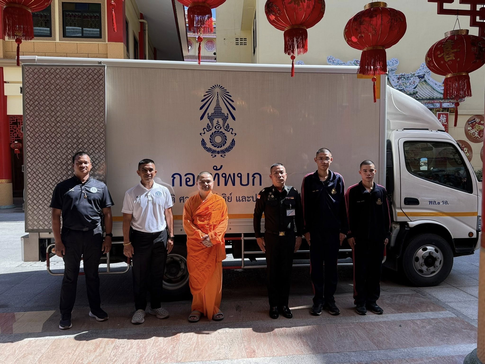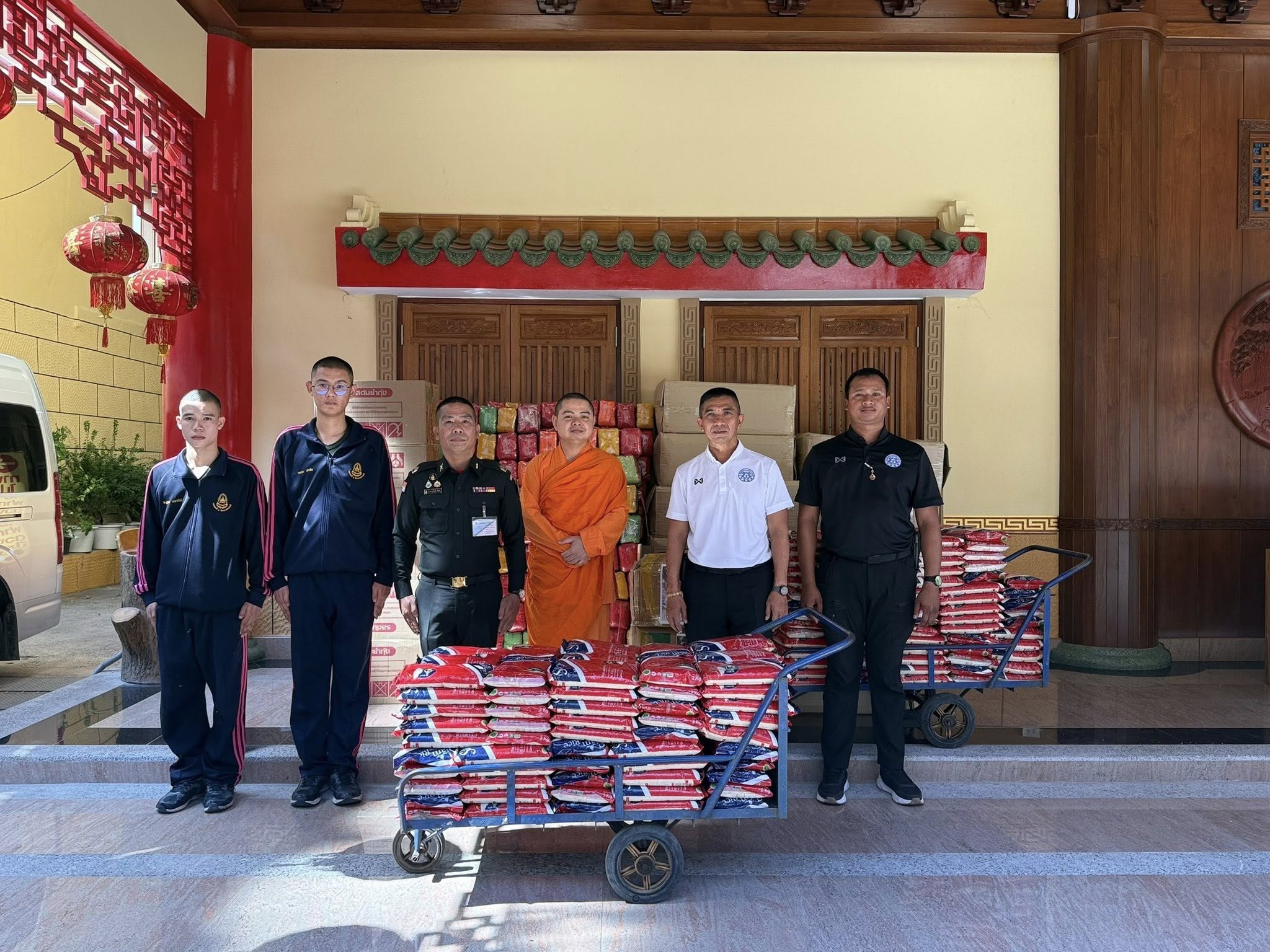 ในการนี้ จึงได้มอบหมายให้ หลวงจีนสมุห์มงคลรัตน์ (เสี่ยมุ่ย) ผู้ช่วยเจ้าอาวาสวัดมังกรกมลาวาส ประธานเขตการศึกษาพระปริยัติธรรม แผนกสามัญศึกษา เขต ๑๓ เป็นตัวแทนในการส่งมอบเครื่องอุปโภคบริโภคและสิ่งของบรรเทาทุกข์ ให้แก่ กองพลที่ 1 รักษาพระองค์ กองบัญชาการกองทัพบก เพื่อนำไปจัดสรรและกระจายความช่วยเหลือให้แก่ประชาชนตามวัตถุประสงค์ต่อไป