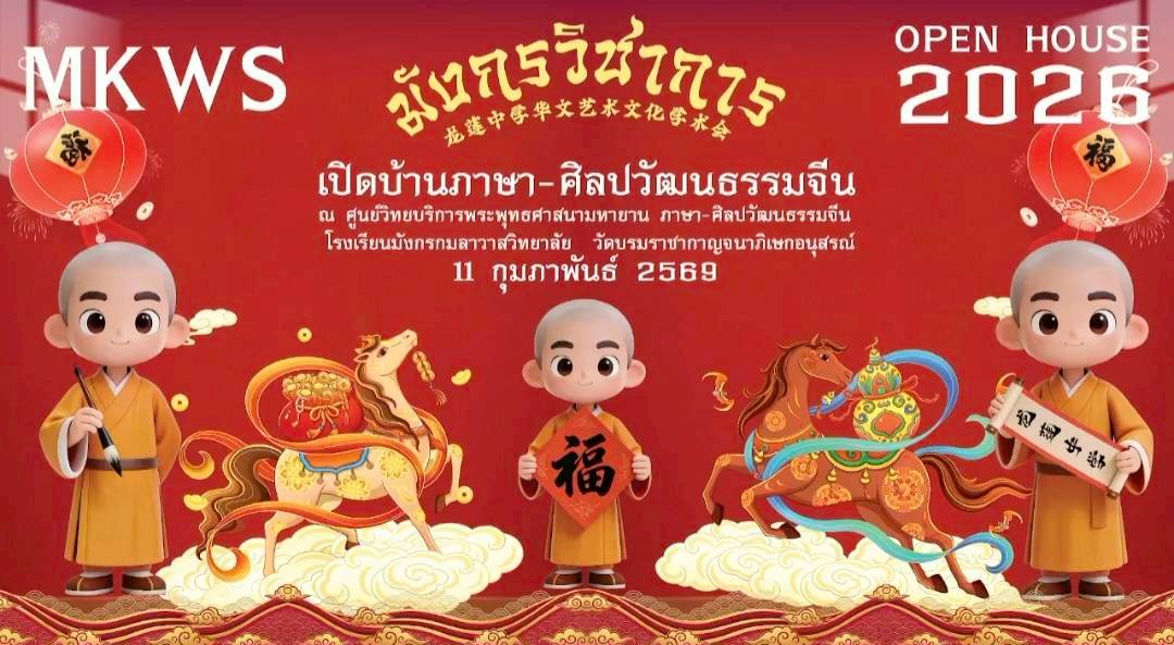 เสี่ยมุ่ย พร้อมด้วยนักวิชาการศาสนา ร่วมกิจกรรมงาน มังกรวิชาการ เปิดบ้านภาษา-ศิลปวัฒนธรรม MKWS Open House 2026 ครั้งที่ ๑ ภายใต้แนวคิด “ปีม้ามุ่งดีงาม สู่ความสำเร็จร่วมกัน” ณ ศูนย์วิทยบริการพระพุทธศาสนามหายาน ภาษา-ศิลปวัฒนธรรมจีน โรงเรียนมังกรกมลาวาสวิทยาลัย วัดบรมราชากาญจนาภิเษกอนุสรณ์ อ.บางบัวทอง จ.นนทบุรี โดยมี พระเดชพระคุณ พระพรหมมุนี กรรมการมหาเถรสมาคม ประธานกรรมการ การศึกษาพระปริยัติธรรม แผนกสามัญศึกษา (สศป.) เมตตามาเป็นประธาน เมื่อวันพุธที่ ๑๑ กุมภาพันธ์ ๒๕๖๙ ที่ผ่านมา