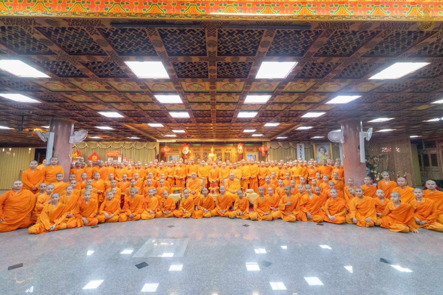 คณะผู้บริหาร คณะครูอาจารย์ และ สามเณรนักเรียน โรงเรียนมังกรกมลาวาสวิทยาลัย กราบสักการะและขอพรปีใหม่