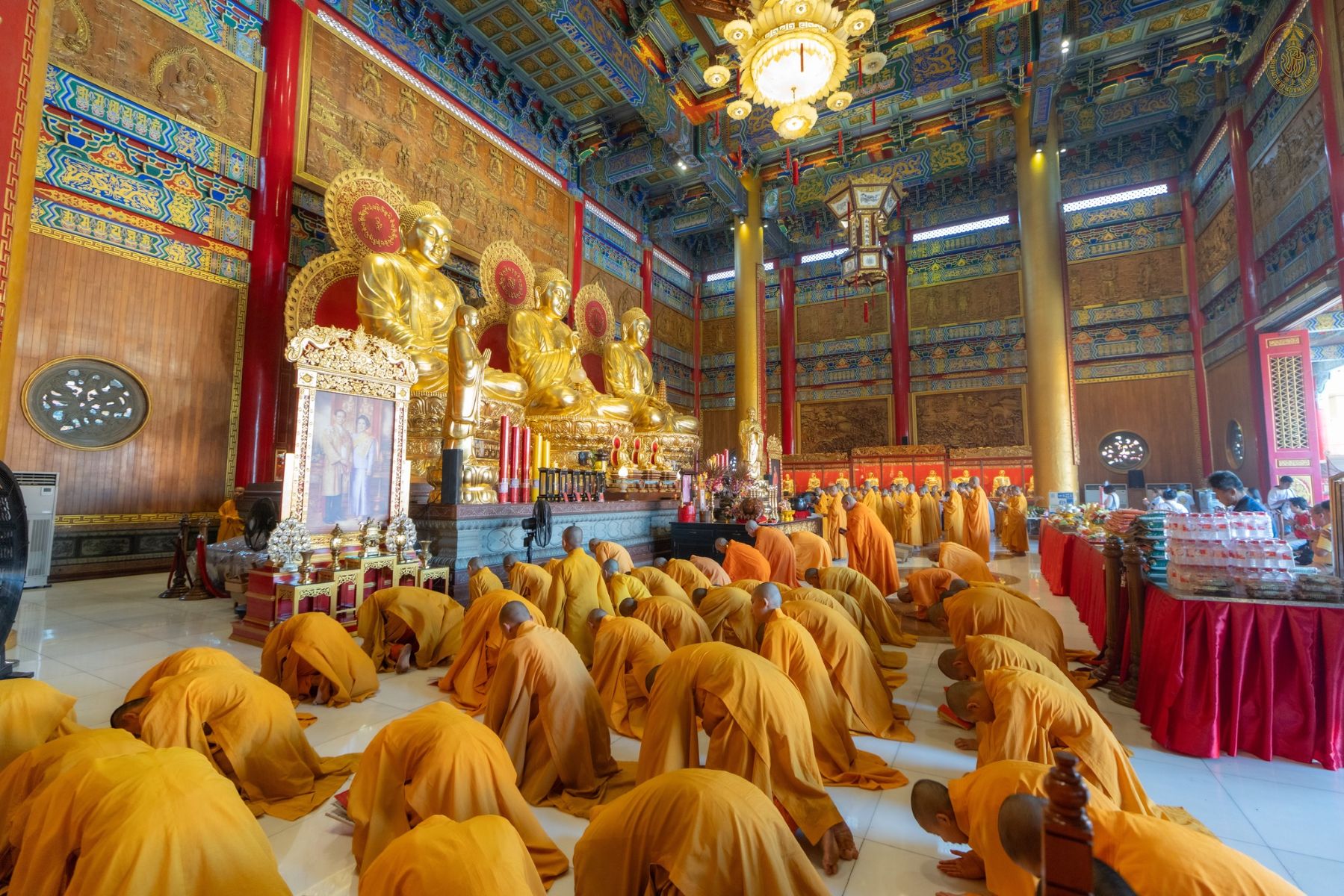 สามเณรนักเรียน โรงเรียนมังกรกมลาวาสวิทยาลัย ร่วมกับคณะพระภิกษุสงฆ์วัดบรมราชากาญจนาภิเษกอนุสรณ์ฯ พร้อมด้วยพุทธบริษัทชาวไทย–จีน ร่วมกันประกอบศาสนพิธีเนื่องในวันสำคัญทางพระพุทธศาสนา ได้แก่ วันมาฆบูชา และร่วมเฉลิมฉลอง เทศกาลหง่วนเซียว (เทศกาลโคมไฟ) ในวัฒนธรรมประเพณีจีน โดยได้ร่วมกันปฏิบัติศาสนกิจ สวดมนต์เจริญภาวนา และประกอบพิธี เวียนเทียนประทักษิณารอบพระอุโบสถ เพื่อถวายเป็นพุทธบูชา แสดงออกถึงความเคารพศรัทธาในพระรัตนตรัย