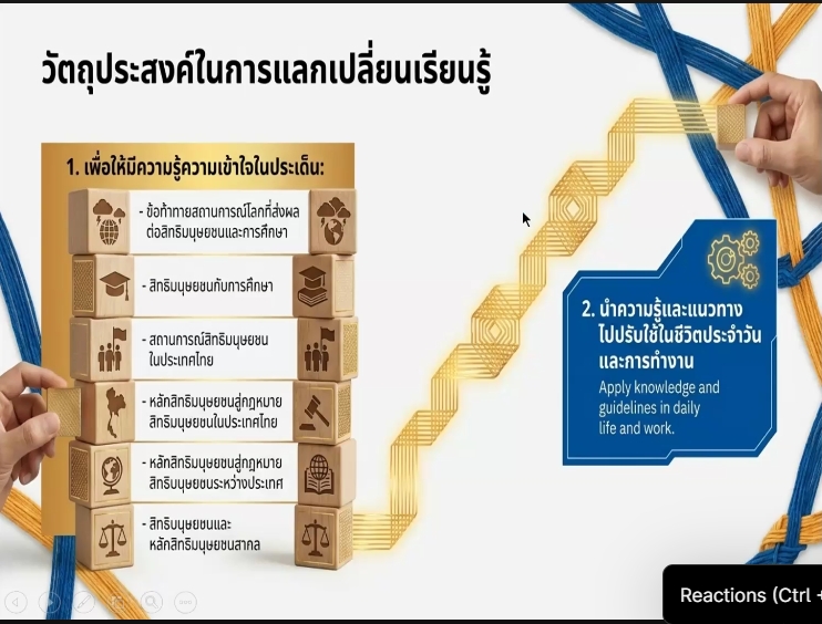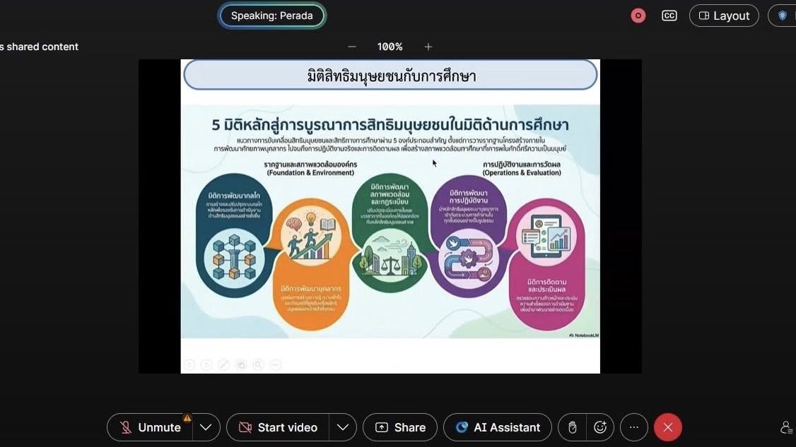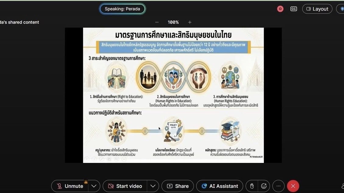 ในการนี้ ได้รับเกียรติจาก รศ.ดร.ประวิต เอราวรรณ์ เลขาธิการสภาการศึกษา เป็นประธานในการประชุม โดยมีวัตถุประสงค์เพื่อแลกเปลี่ยนเรียนรู้แนวทางการพัฒนาการศึกษาไทยให้สอดคล้องกับมาตรฐานสากล เสริมสร้างความเข้าใจด้านสิทธิมนุษยชน และส่งเสริมการจัดการศึกษาที่ยั่งยืนในบริบทสากล