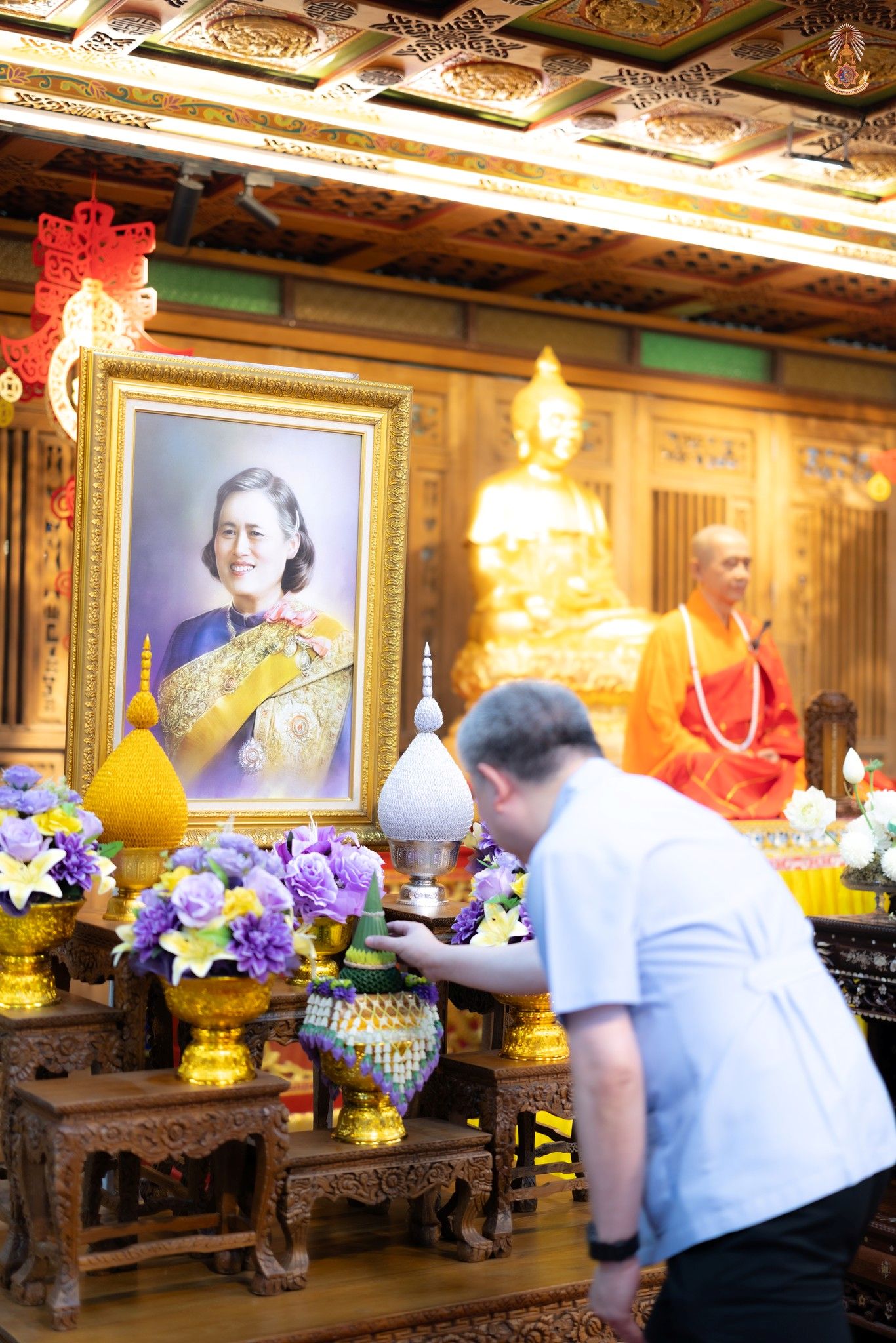 ในการนี้ พระคณาจารย์จีนธรรมวชิรานุวัตร (หลวงพ่อเย็นงี้) รองเจ้าคณะใหญ่จีนนิกาย เจ้าอาวาสวัดมังกรกมลาวาส เมตตามาเป็นประธานในพิธี พร้อมทั้ง พระครูสิทธิธรรมานุกูล เจ้าอาวาสวัดละหาร ได้นำคณะพระภิกษุสงฆ์วัดละหาร อำเภอบางบัวทอง จังหวัดนนทบุรี ตลอดจนสามเณรในโครงการปิดเทอมใต้ร่มธรรม เข้าร่วมประกอบพิธีถวายพระราชกุศลด้วย