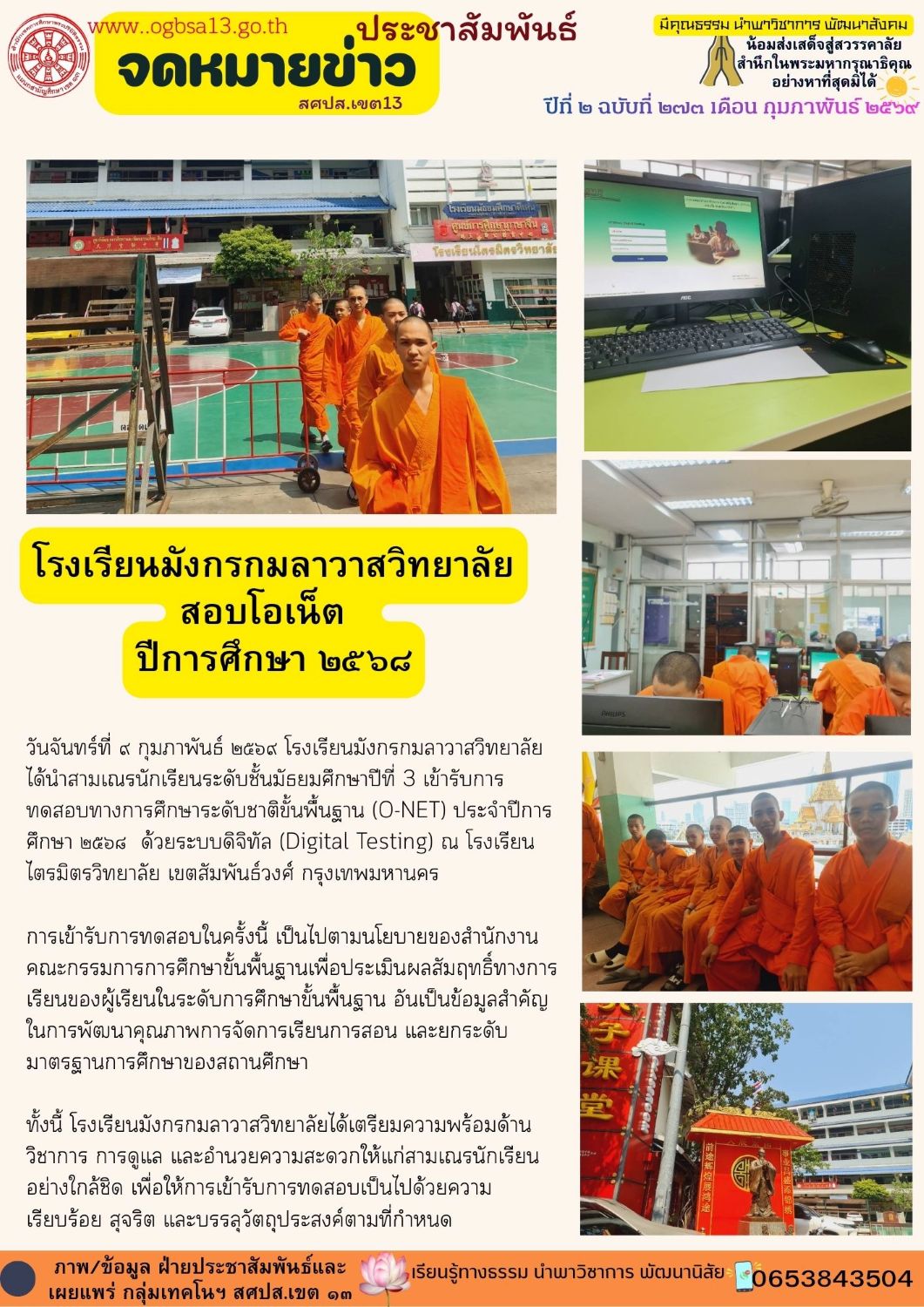 สอบ โอเน็ต ปีการศึกษา 2568 โรงเรียนวัดโพธิทัตราชวิทยาลัย