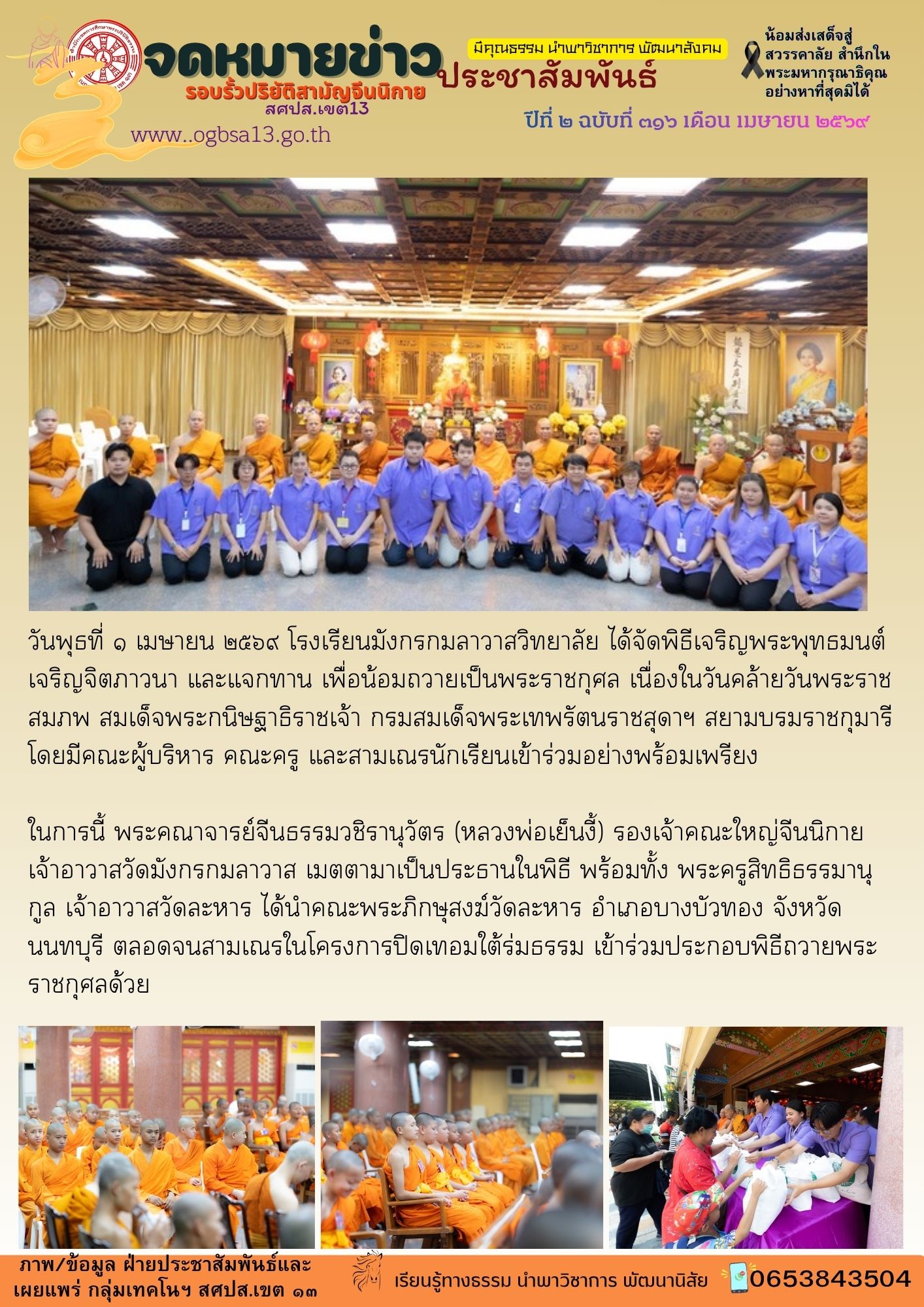 กำหนดการโรงเรียนมังกรกมลาวาสวิทยาลัย จ.นนทบุรี (การบวชเรียน) ปีการศึกษา 2569 (5/0) 30 มี.ค. 69