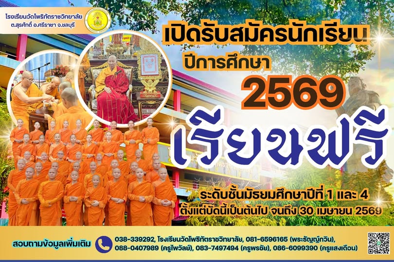 โรงเรียนวัดโพธิทัตราชวิทยาลัย เปิดรับสมัครนักเรียนใหม่ ปีการศึกษา 2569 แล้วจ้า