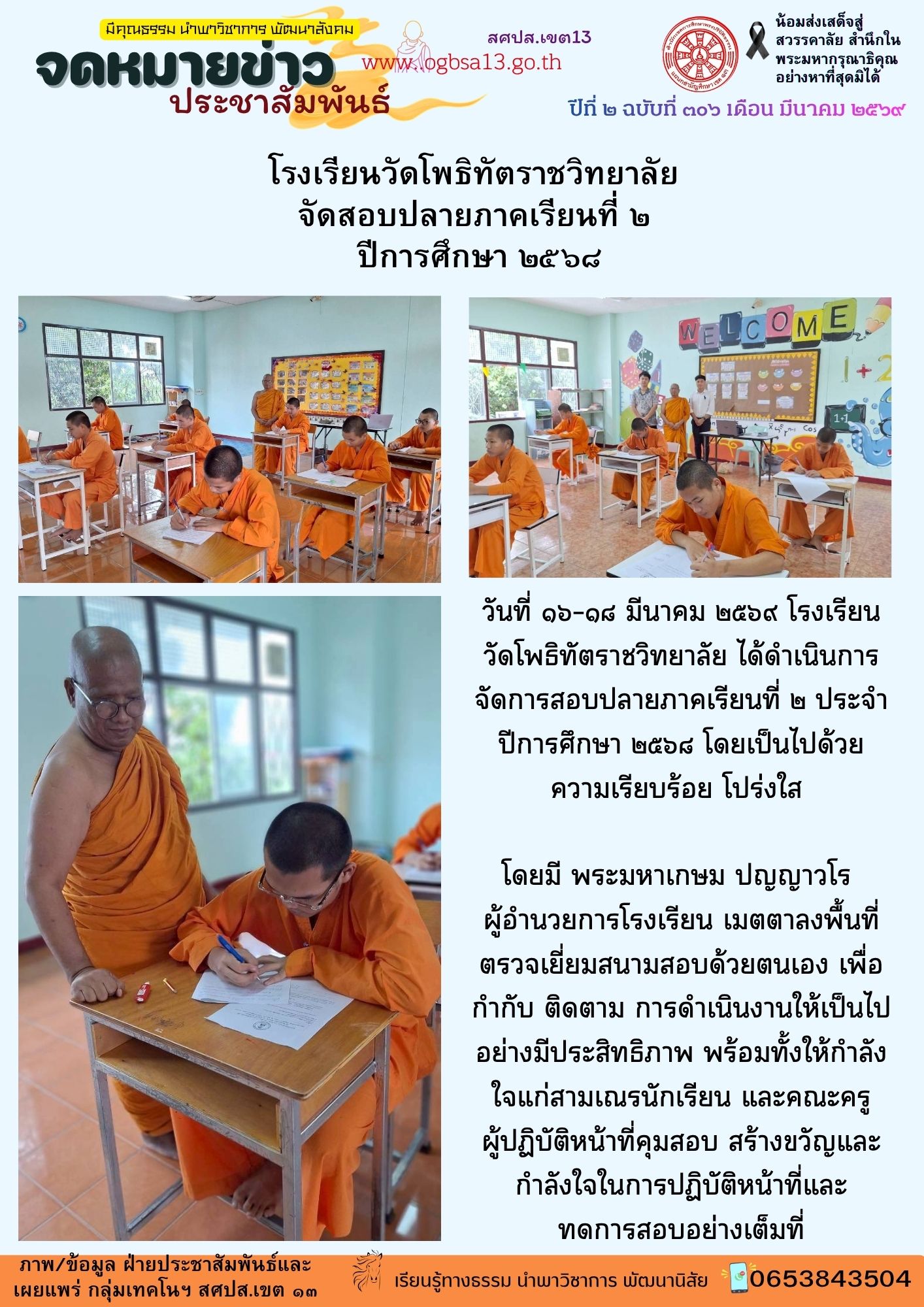 โรงเรียนวัดโพธิทัตราชวิทยาลัย รับสมัครนักเรียนใหม่ (15/0) 13 มี.ค. 69