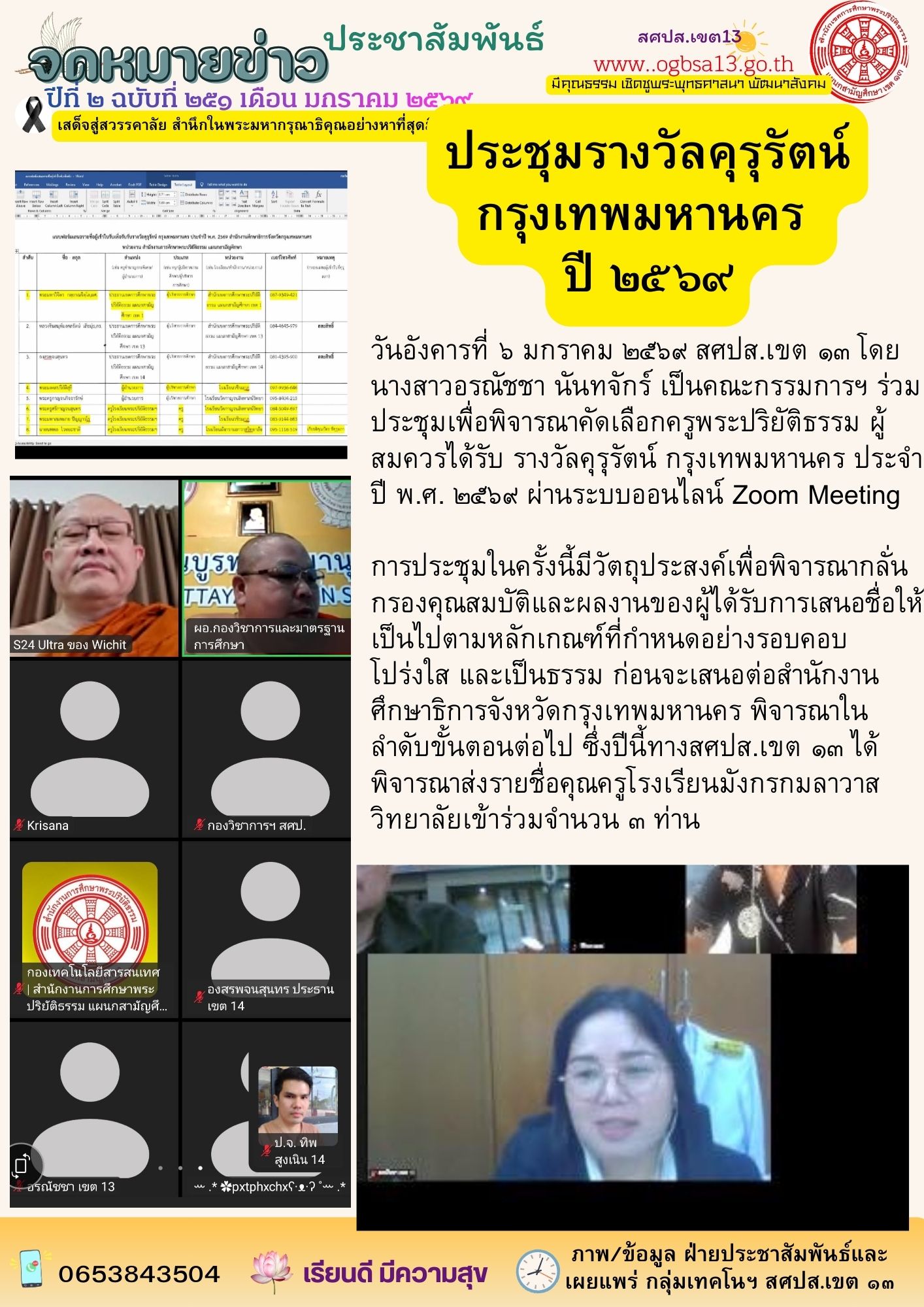 ประชุมรางวัล คุรุรัตน์ กรุงเทพมหานคร ประจำปี 2569