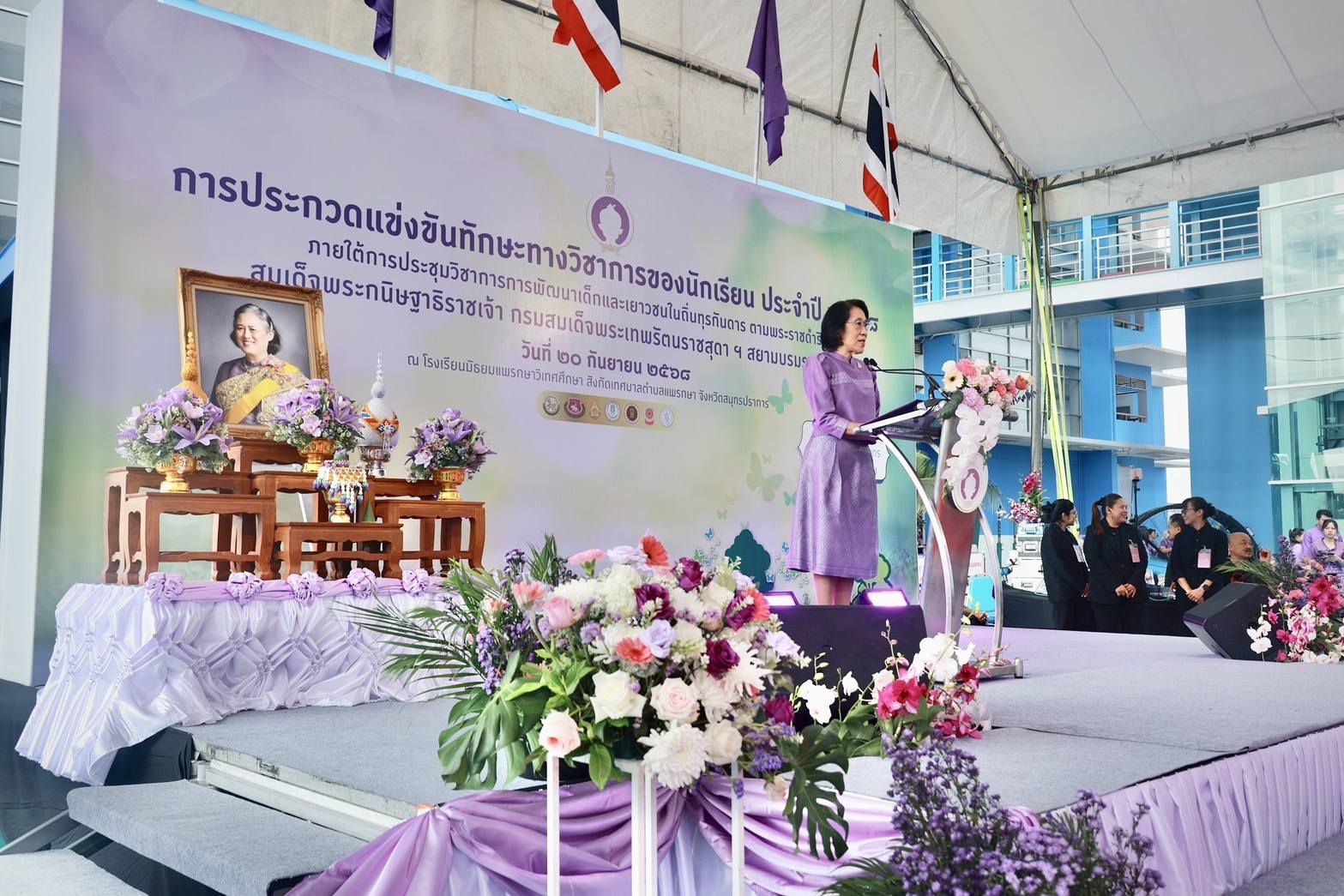 โรงเรียนวัดหมื่นพุทธวิทยา ร่วมพิธีเปิดการแข่งขันทักษะทางวิชาการ ภายใต้การประชุมวิชาการการพัฒนาเด็กและเยาวชนในถิ่นทุรกันดาร ตามพระราชดำริ สมเด็จพระกนิษฐาธิราชเจ้า กรมสมเด็จพระเทพรัตนราชสุดาฯ สยามบรมราชกุมารี ประจำปี ๒๕๖๘ ณ โรงเรียนมัธยมแพรกษาวิเทศศึกษา จ.สมุทรปราการ เมื่อวันเสาร์ที่ ๒๐ กันยายน ๒๕๖๘ ที่ผ่านมา โดยมีหน่วยงานจัดการศึกษาภายใต้โครงการ กพด. ทั้ง ๗ หน่วยงาน เข้าร่วมอย่างพร้อมเพรียง ครั้งนี้โรงเรียนวัดหมื่นพุทธวิทยา ได้ส่ง สามเณรจักรกฤษ์ เจี้ยนยุฮะ ตัวแทนชนะเลิศการแข่งขันเรียงความภาษาไทยในระดับจังหวัด ร่วมการแข่งขันด้วย