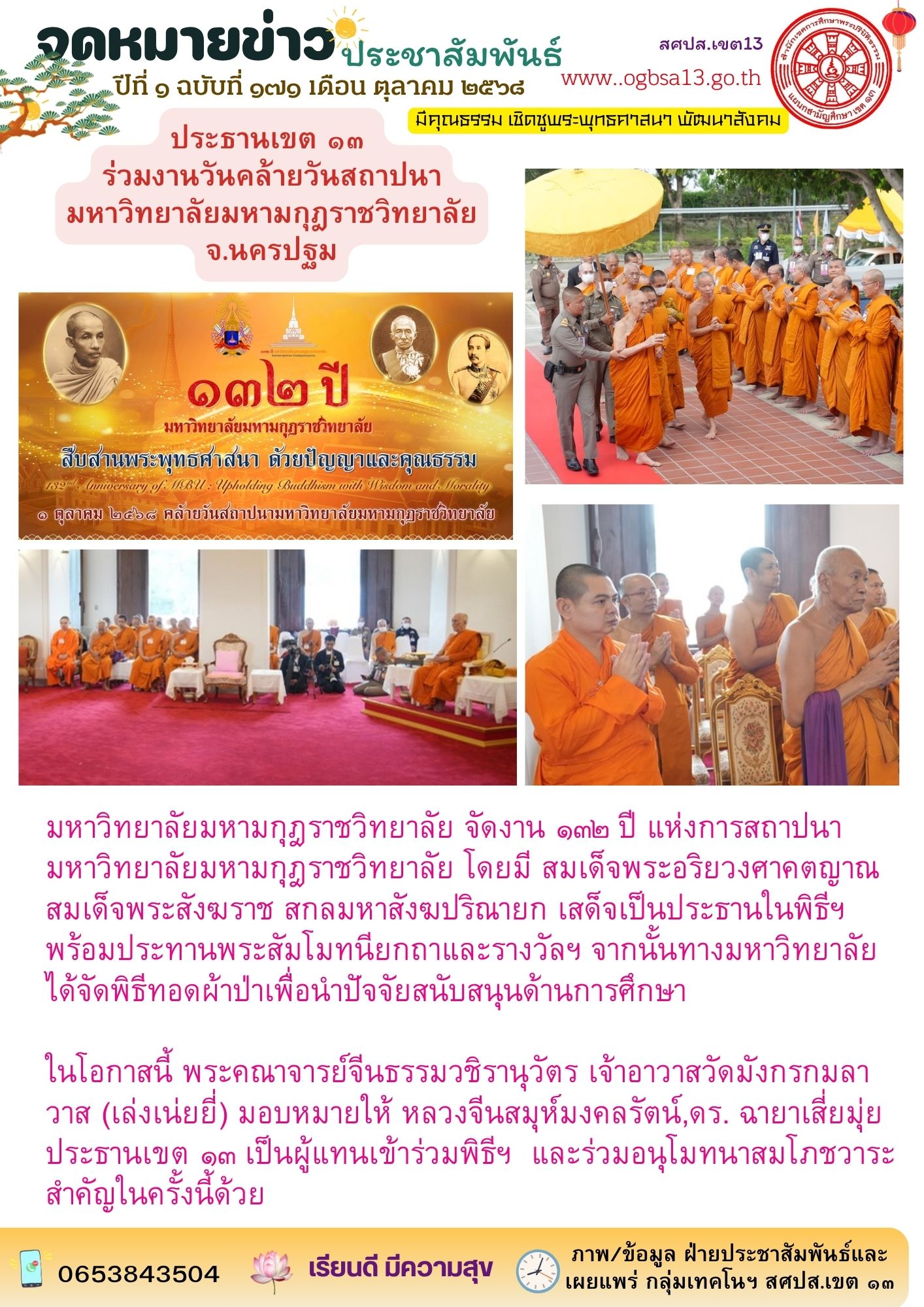 ประธานเขต ๑๓ ร่วมงานวันคล้ายวันสถาปนามหาวิทยาลัยมหามกุฎราชวิทยาลัย จ.นครปฐม