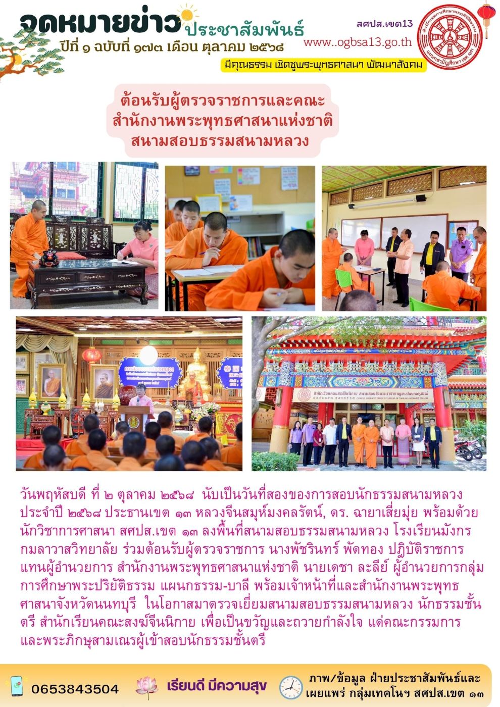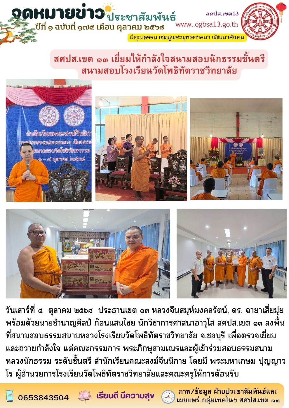สศปส.เขต ๑๓ เยี่ยมให้กำลังใจสนามสอบนักธรรมชั้นตรี สนามสอบโรงเรียนวัดโพธิทัตราชวิทยาลัย