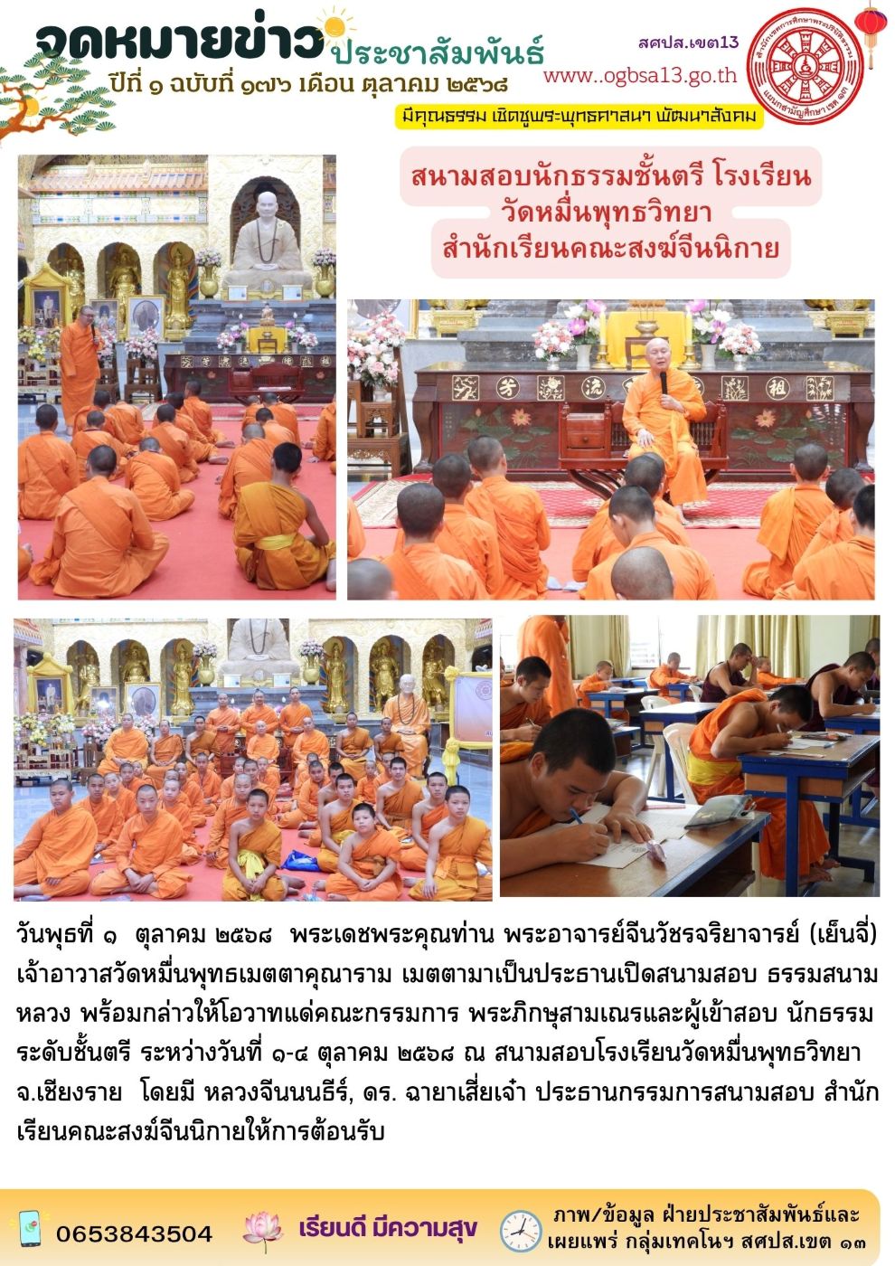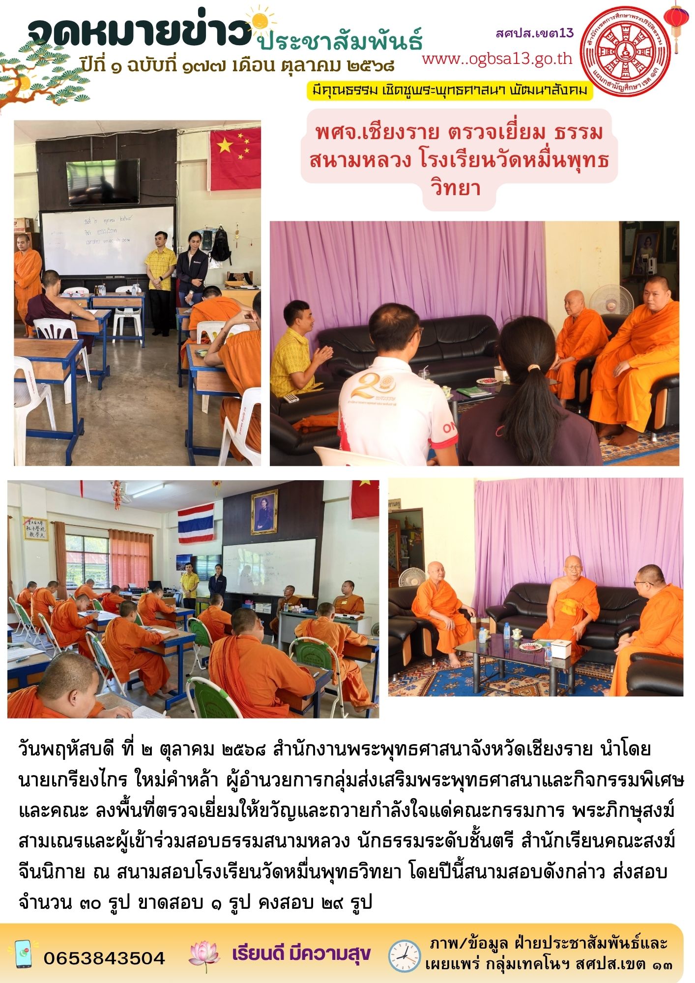 พศจ.เชียงราย ตรวจเยี่ยม ธรรมสนามหลวง โรงเรียนวัดหมื่นพุทธวิทยา