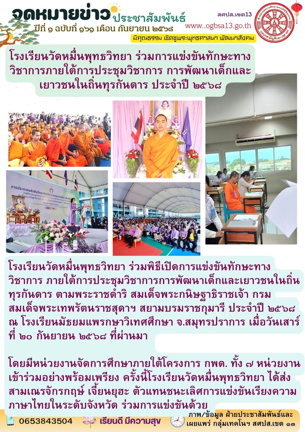 โรงเรียนวัดหมื่นพุทธวิทยา ร่วมแข่งขันทักษะวิชาการภายใต้การประชุมวิชาการ การพัฒนาเด็กและเยาวชนในถิ่นท